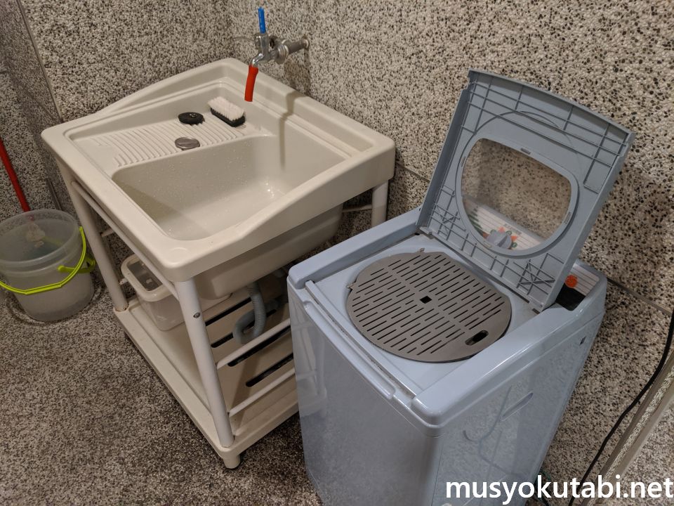 洗濯機は無いのですが、洗濯場と脱水機はあります。